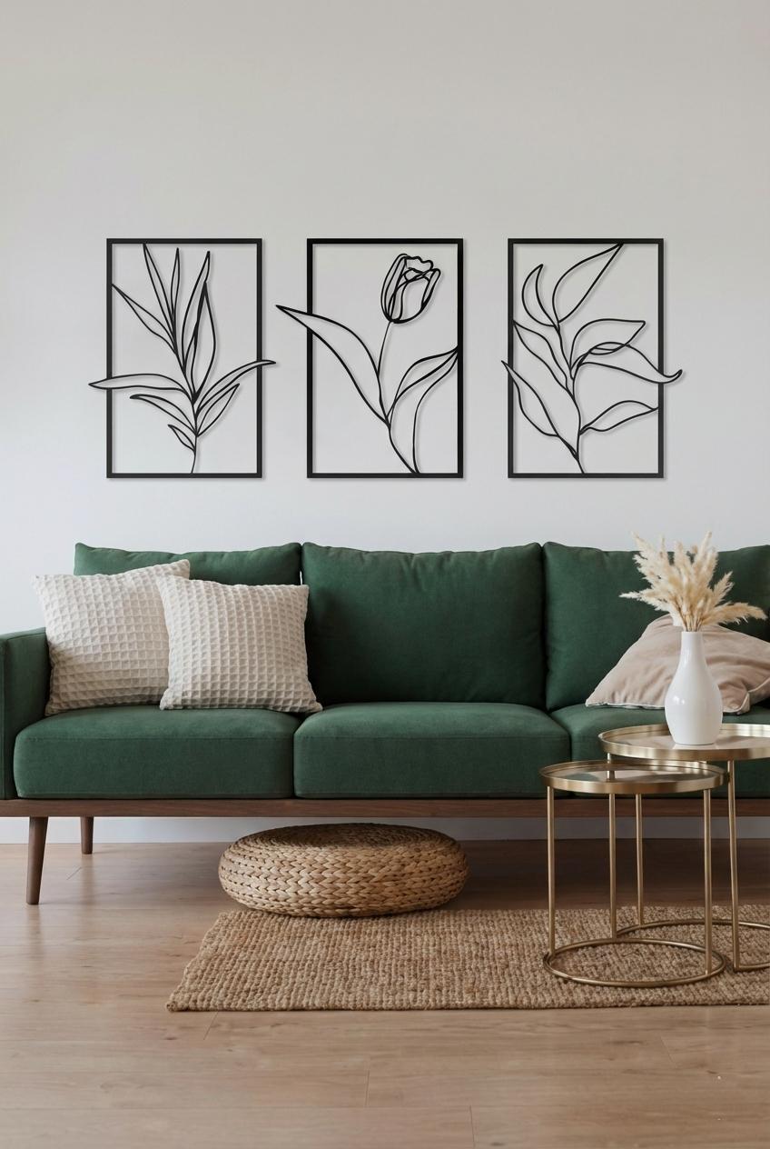 Bring calm, contemporary elegance to your space with this 3-Panel Minimal Floral Metal Wall Art set. Designed with delicate, flowing botanical linework, each panel features a unique floral form that comes together as a cohesive, modern statement when displayed side by side.