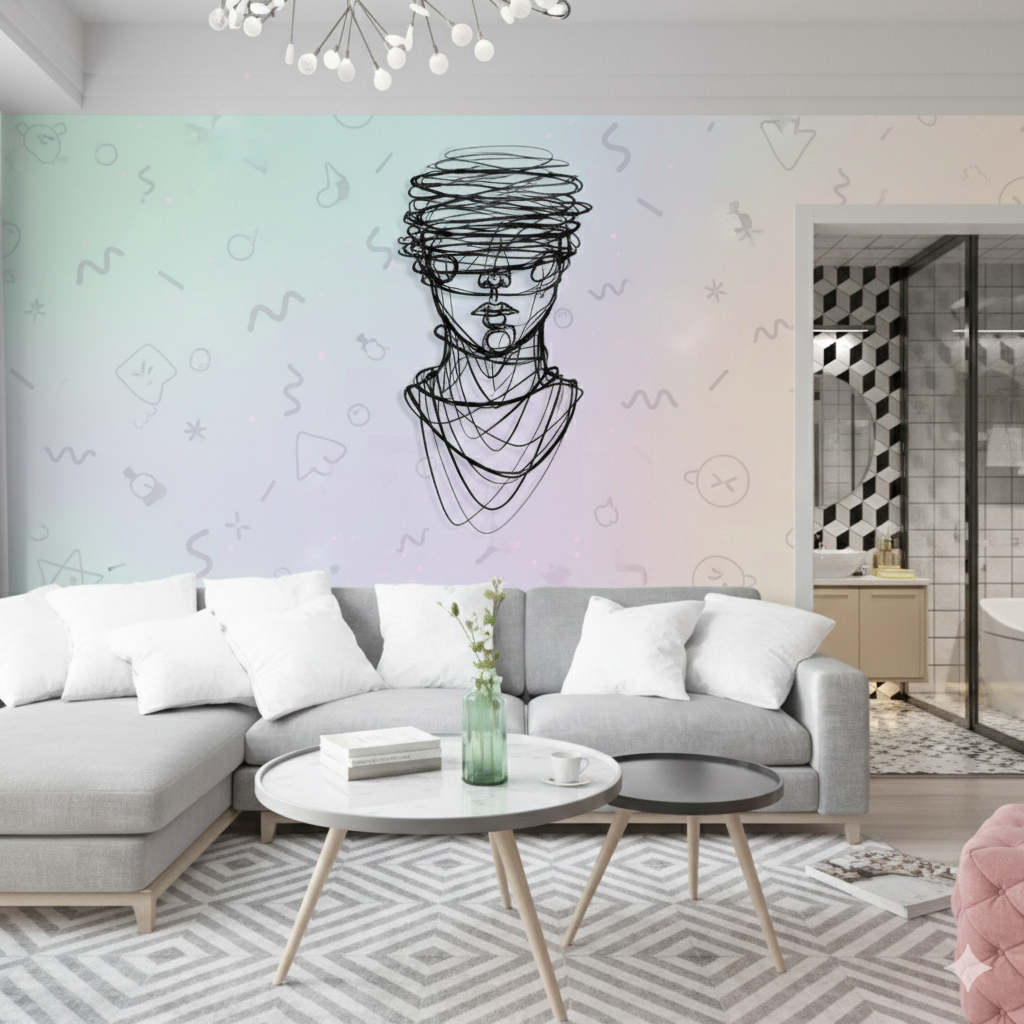 Crafted from premium metal with a sleek black finish, the design feels light yet powerful—perfect for contemporary living rooms, creative studios, bedrooms, or Gen Z interiors that thrive on individuality. The open-line structure creates depth and movement, making your wall feel alive.